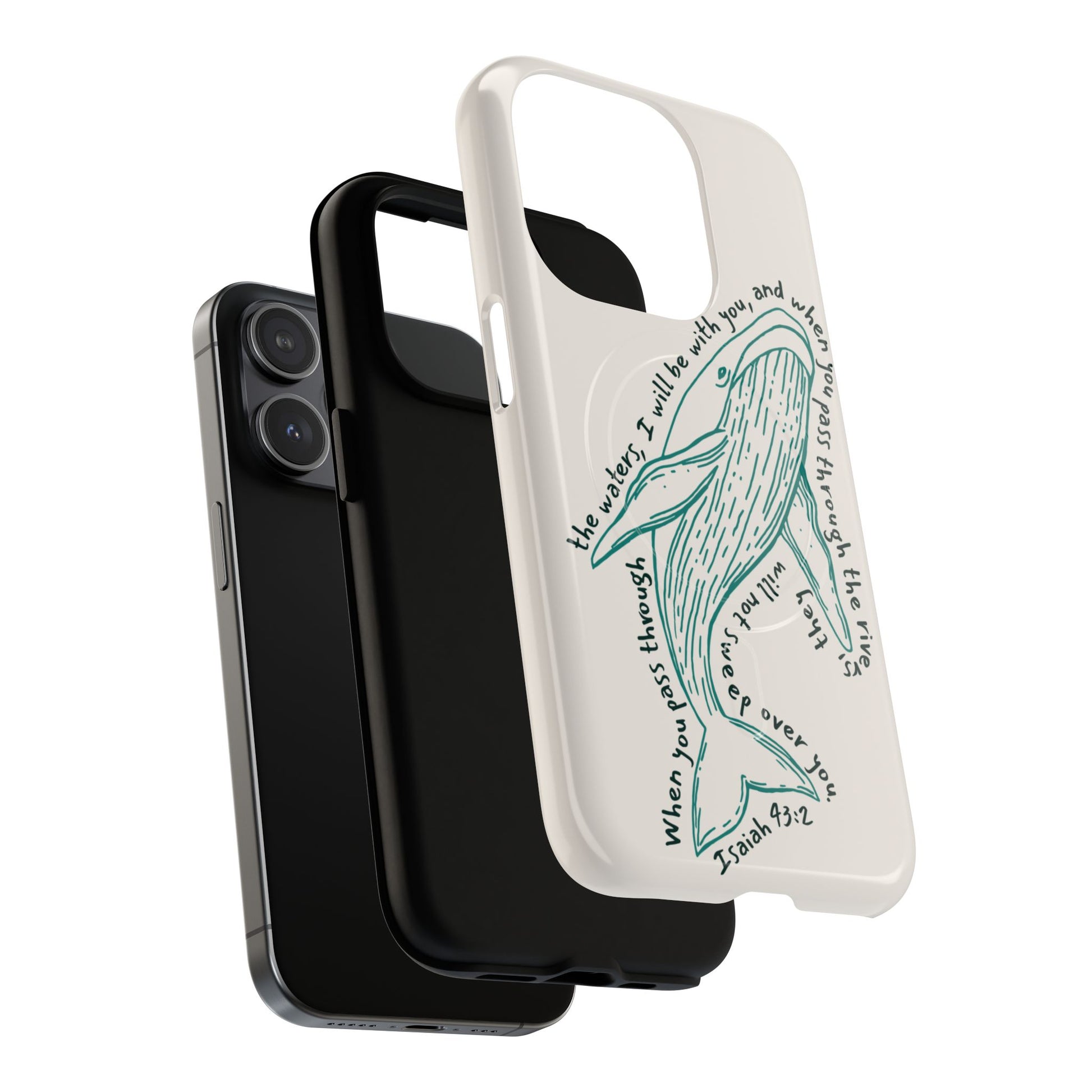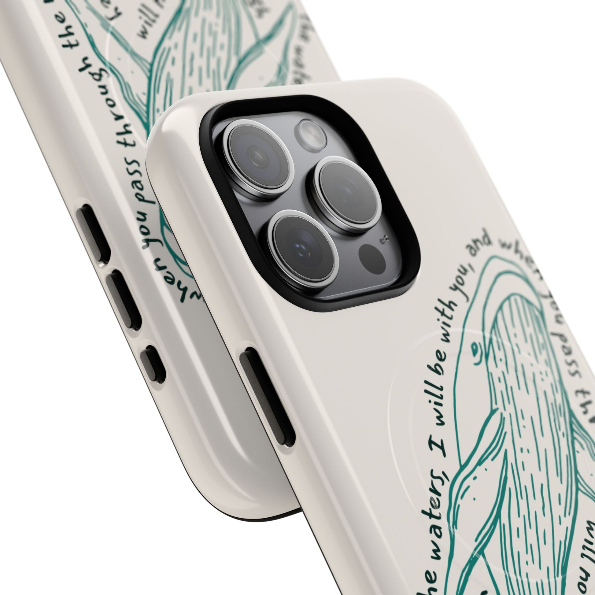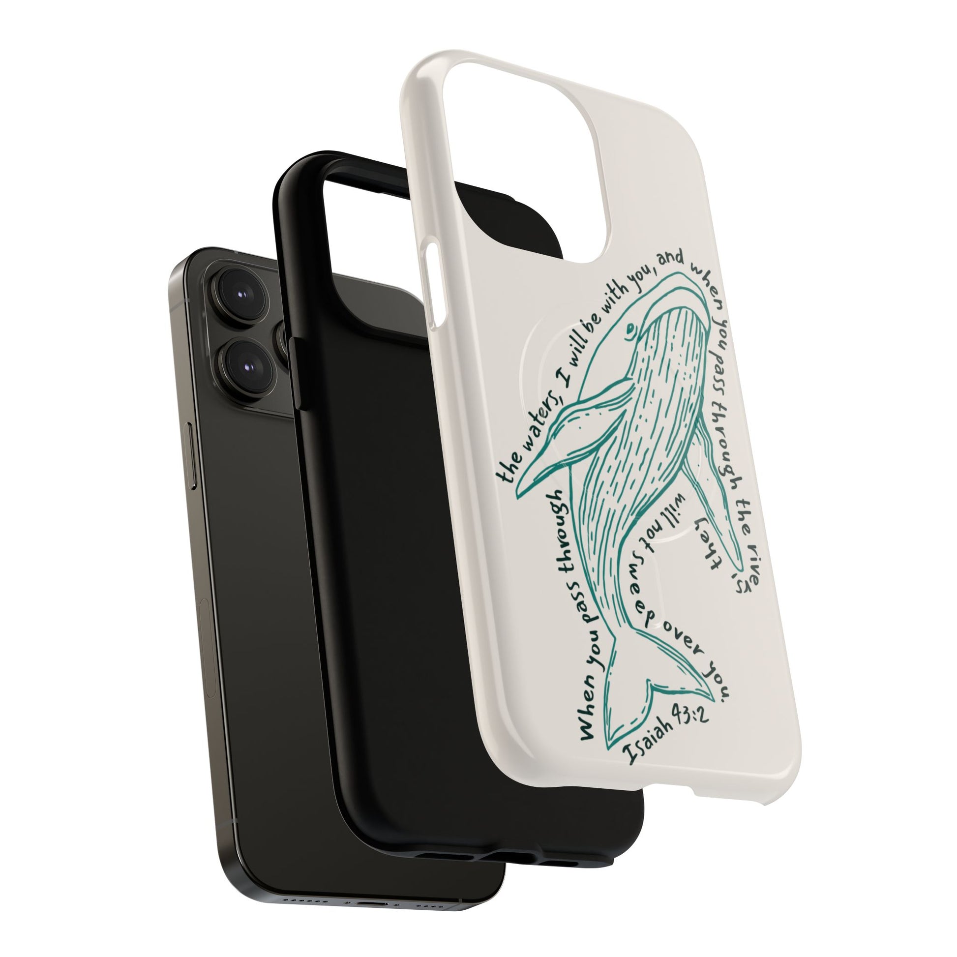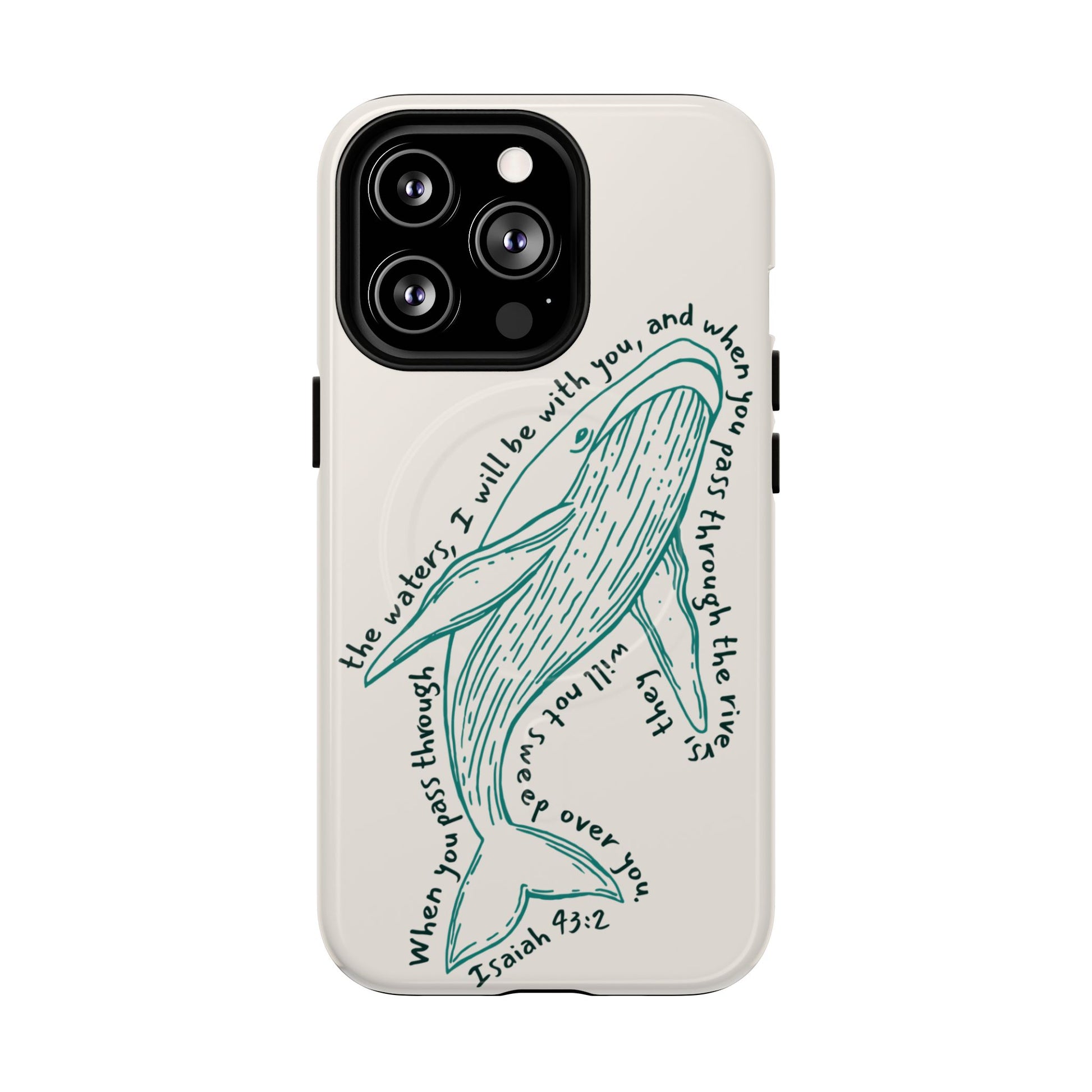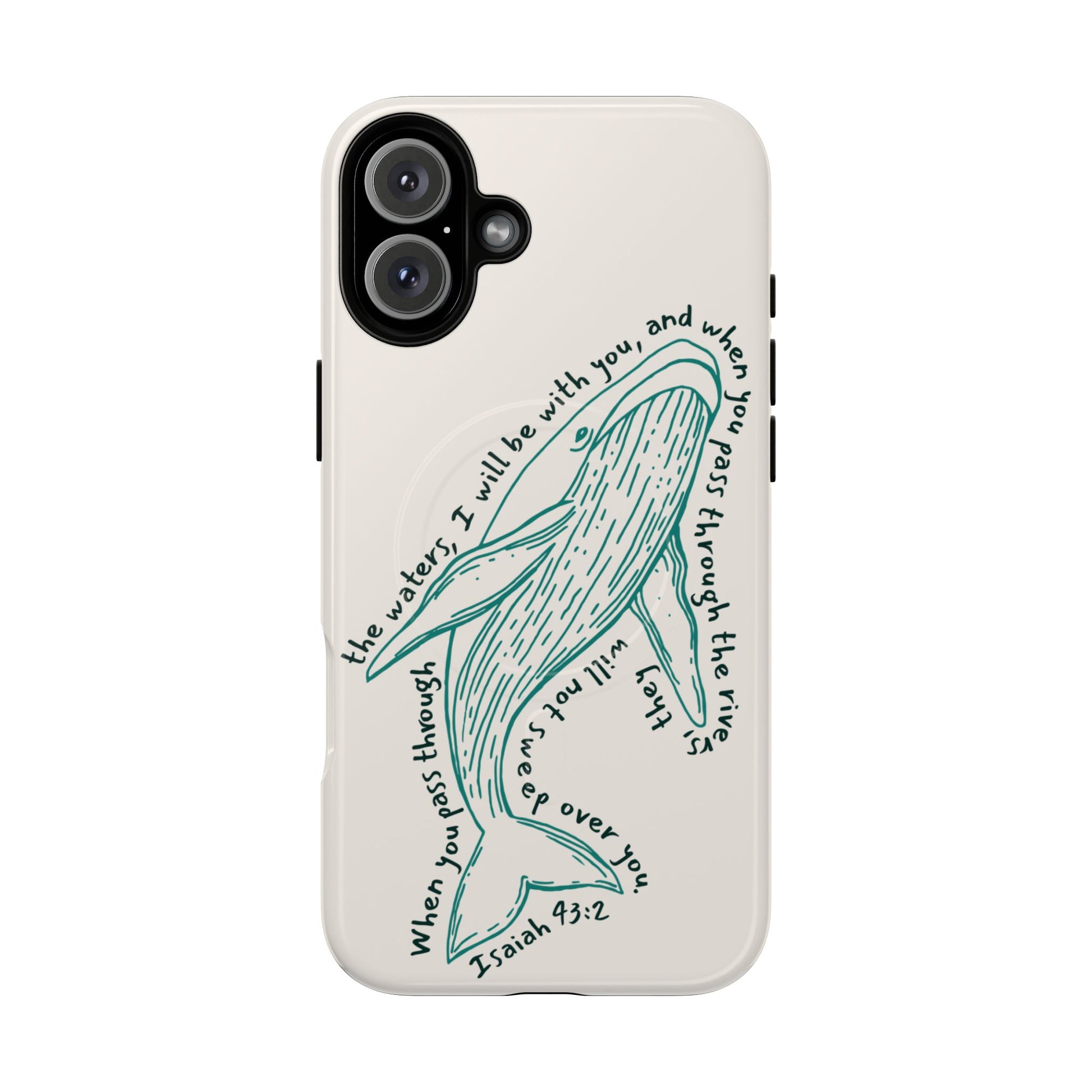 This beautifully illustrated whale design is a quiet reminder of God’s presence in every season — steady, protective, and unwavering. Inspired by Isaiah 43:2, this case speaks to faith through calm waters and stormy ones alike, offering comfort you can carry with you each day.